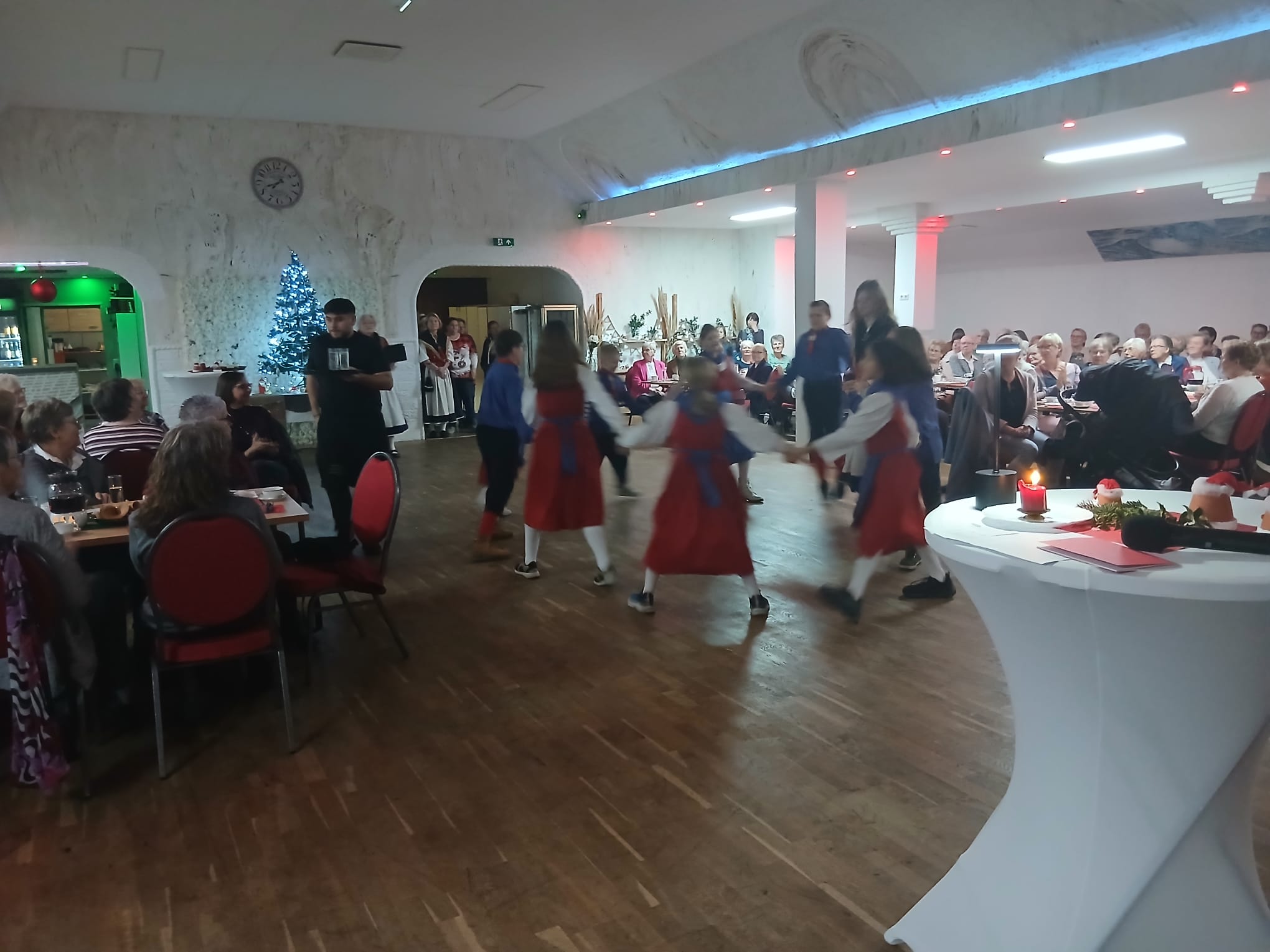 Die Gruppe "Cappuccino" sorgte mit einem humorvollen Sketch und vielen bekannten Weihnachtsliedern zum Mitsingen für stimmungsvolle Unterhaltung. Eine weihnachtliche Geschichte, vorgetragen von Edda Herzog, stimmte alle Anwesenden auf das Weihnachtsfest ein.
