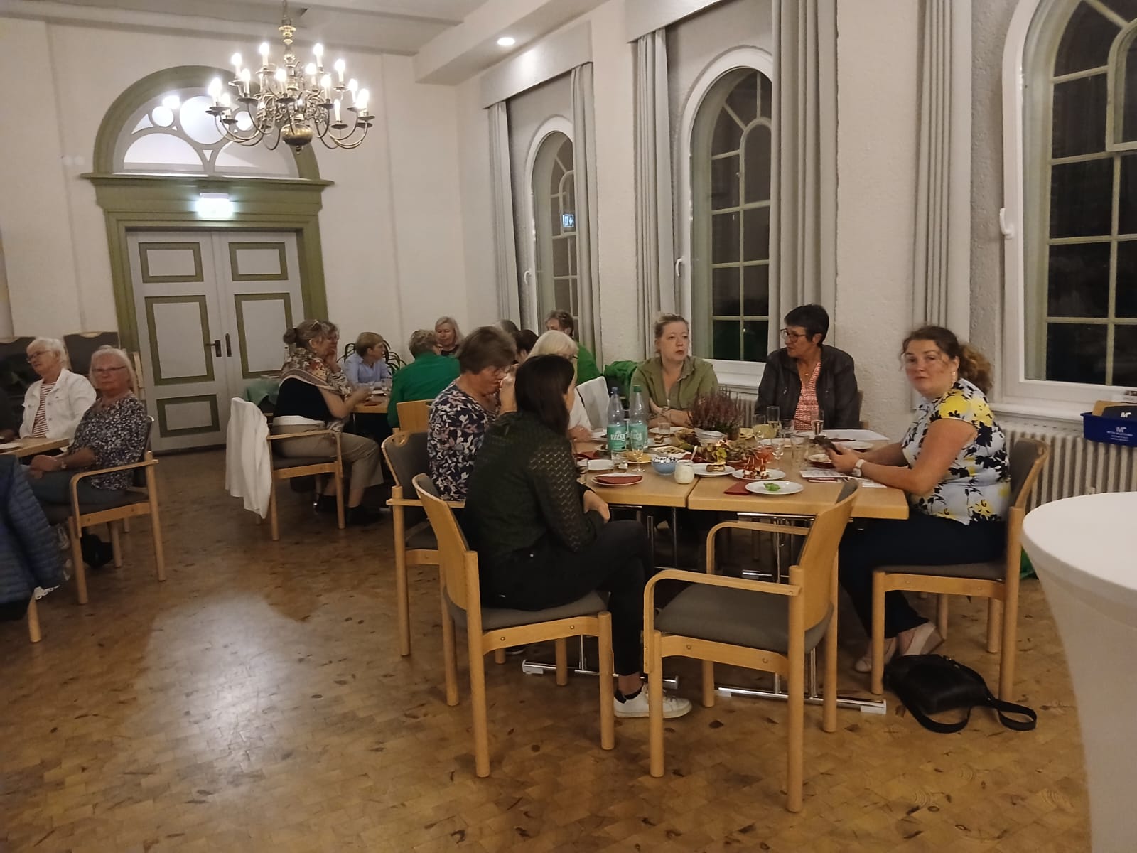 Die 1956 erbaute Kaskade ist noch im Originalzustand erhalten. Über 1.000 m² Ausstellungsfläche auf 6 Ebenen übersichtlich angeordnet. Im Dachgeschoss hatte man eine tolle Aussicht auf den Jadebusen. Die Führung war eine Zeitreise durch die letzten Jahre der Wasserversorgung. Dabei wurde deutlich, dass gutes Trinkwasser keineswegs selbstverständlich aus dem Wasserhahn floss. Da wurde uns schon bewusst, wie kostbar unser Trinkwasser doch ist. Auch im Wandel unserer Zeit liegt der Fokus dieser erlebnisreichen Wissenswelt für Kinder, Jugendliche und Erwachsene, die in dem ältesten Speicherpumpwerk entstanden ist. In einem Mitmach- Konzept sorgt das blaue Klassenzimmer für unterschiedliche Aktivitäten durch Quiz, Talkshow oder Rollenspiele in jeder Altersstufe. Die Grundlage dafür ist, Wasserversorgung zu übermittlen. Nach so vielen Informationen konnten die Damen dann zu Fuß weiter zum Landhaus Diekmannshausen laufen. Dort gab es ein super reichhaltiges kalt-warmes Abendbrotbuffet.
