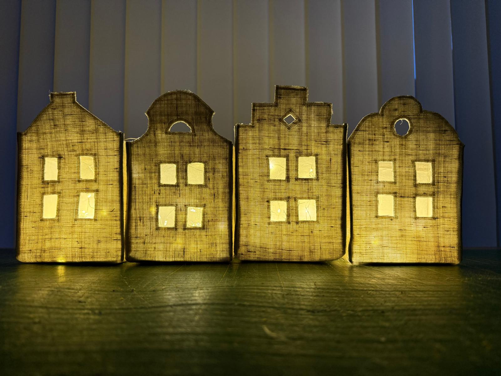Ein Dorf mit beleuchteten Häusern, genäht unter Anleitung von Helene Fischer von der Patchworkgruppe der Wittmunder LandFrauen