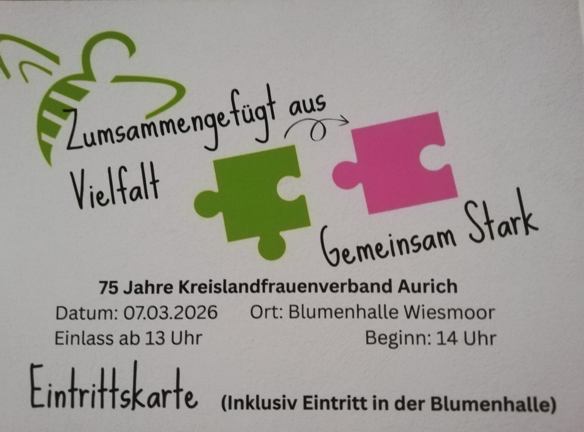 7. März 2026 Einladung 75 Jahre KreisLandFrauenverband Aurich