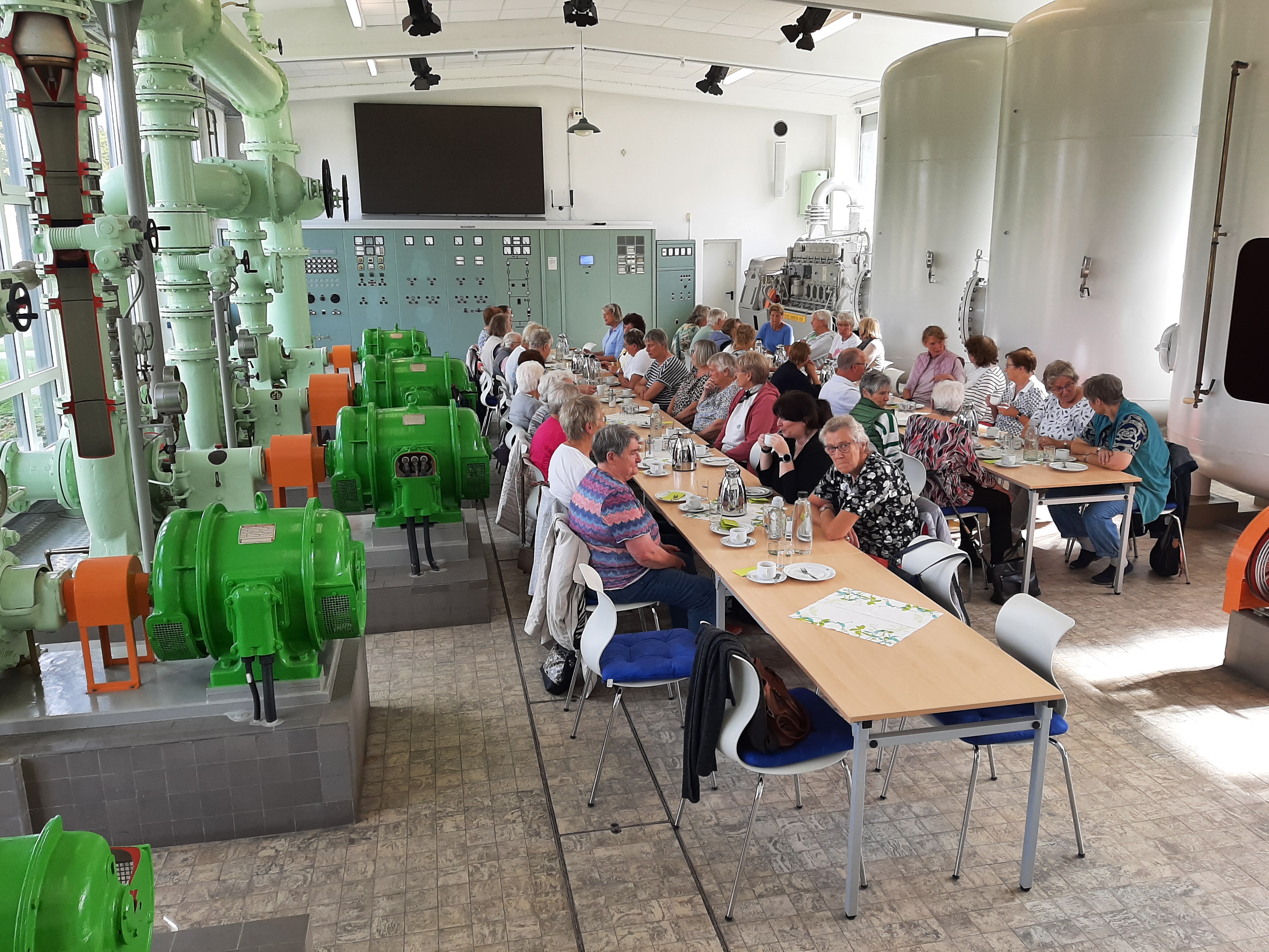 Bei gutem Septemberwetter trafen sich 43 Damen zur Nachmittagsfahrt zum OOWV-Kaskade Museum & Mehr. Nach dem Kaffeetrinken in der Pumpenhalle der Kaskade des OOWV gab es eine sehr ausführliche und interessante Führung.