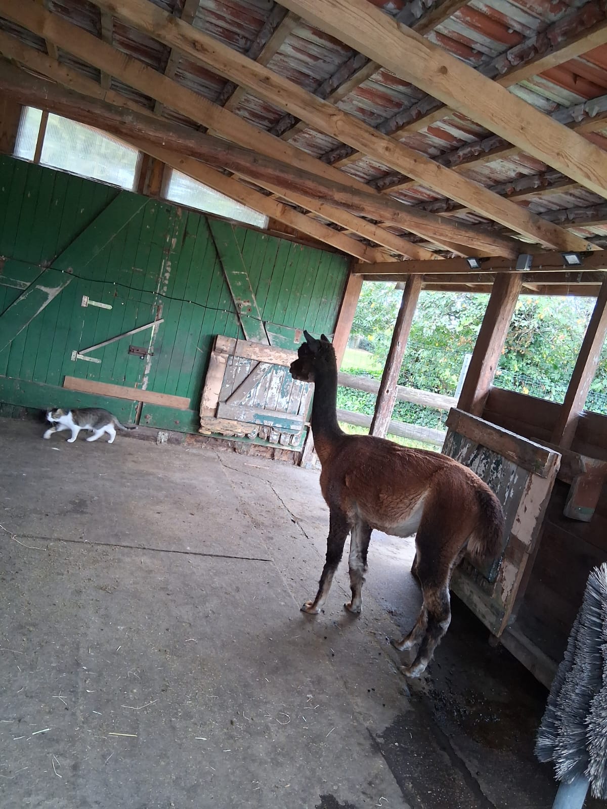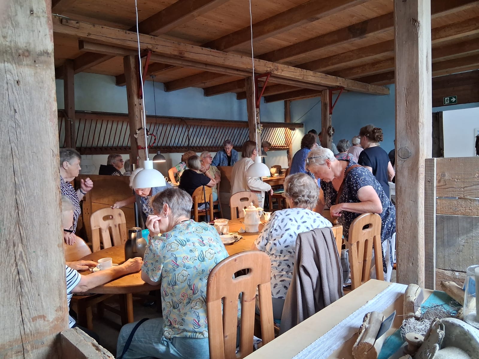 Weiter ging es dann zum "Strohabenteuer" in Middels, wo noch etliche Autofahrerinnen dazu kamen, sodass die Gruppe auf 35 Damen anstieg. In der rustikal eingerichteten ehemaligen Scheune gab es Tee, Kaffee und Kuchen. Auch das Außengelände mit Hühnern, Ziegen und Alpakas konnte besichtigt werden.