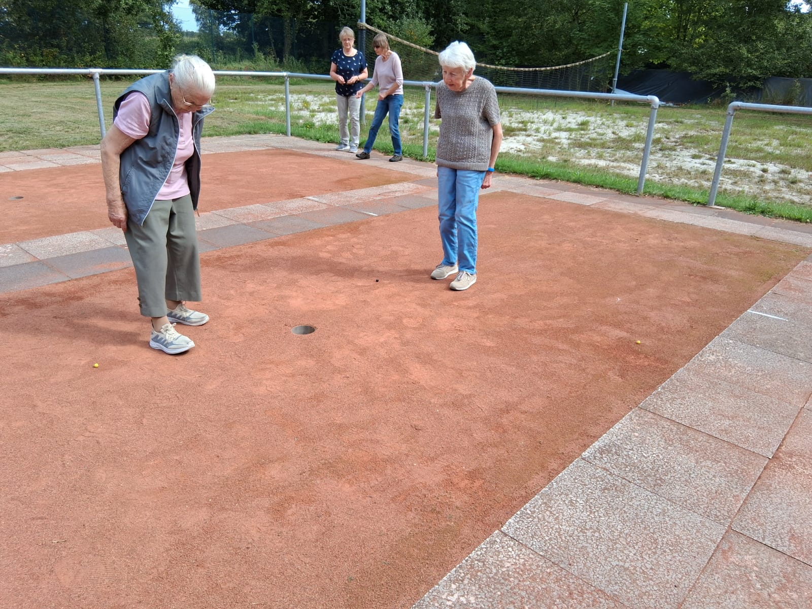 Am 28. August trafen sich 17 gutgelaunte Fahrradfahrerinnen in Neuschoo und Umgebung, um gemeinsam eine Tour nach Middels zu starten. Bei bestem Reisewetter fuhren die Damen auf wenig befahrenen Nebenstraßen zum Vereinsgelände des TuS Middels am Barger Weg. Ein Spiel- bzw. Sportvergnügen stand dort den Landfrauen bevor: Das "Knickerspielen"! Mitglieder des TuS hatten vor einigen Jahren 3 Sandfelder hergerichtet, wo eine Vertiefung am Ende das Ziel zum Einlochen der Murmeln ist. Man kann sich vorstellen, dass die älteren Damen klar im Vorteil waren! Hatten sie doch in ihrer Kindheit unzählige Male das Spiel gespielt und so manchen Sieg errungen. So erwachte in den "älteren Mädels" dann doch der Ehrgeiz, ihre Gegnerin zu bezwingen. Doch der Spaß daran überwog bei Weitem! Mittlerweile gibt es sogar Deutsche- und Weltmeisterschaften im Murmelspielen, wie uns der Platzwart berichten konnte.